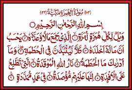 - وَيْلٌ لِكُلِّ هُمَزَةٍ لُمَزَةٍ Kecelakaanlah bagi setiap pengumpat lagi pencela,
